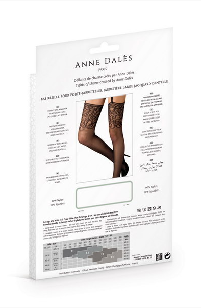Ces bas en résille fine se transforment sur la cuisse en dentelle.
