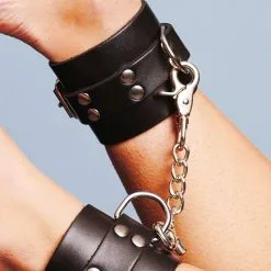 Chevillères En Cuir Avec Pics Et Mousqueton – Noires