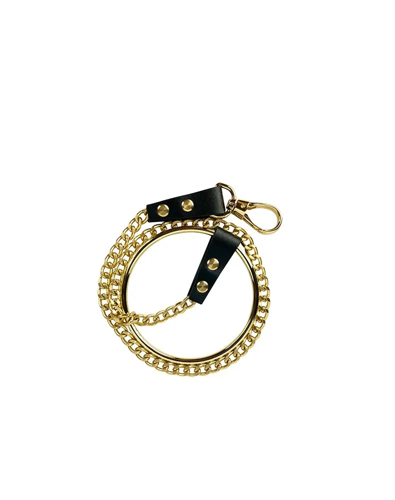 Devenant poignée, il transforme cette laisse en chaîne plaquée or en un véritable accessoire de jeu de luxe.