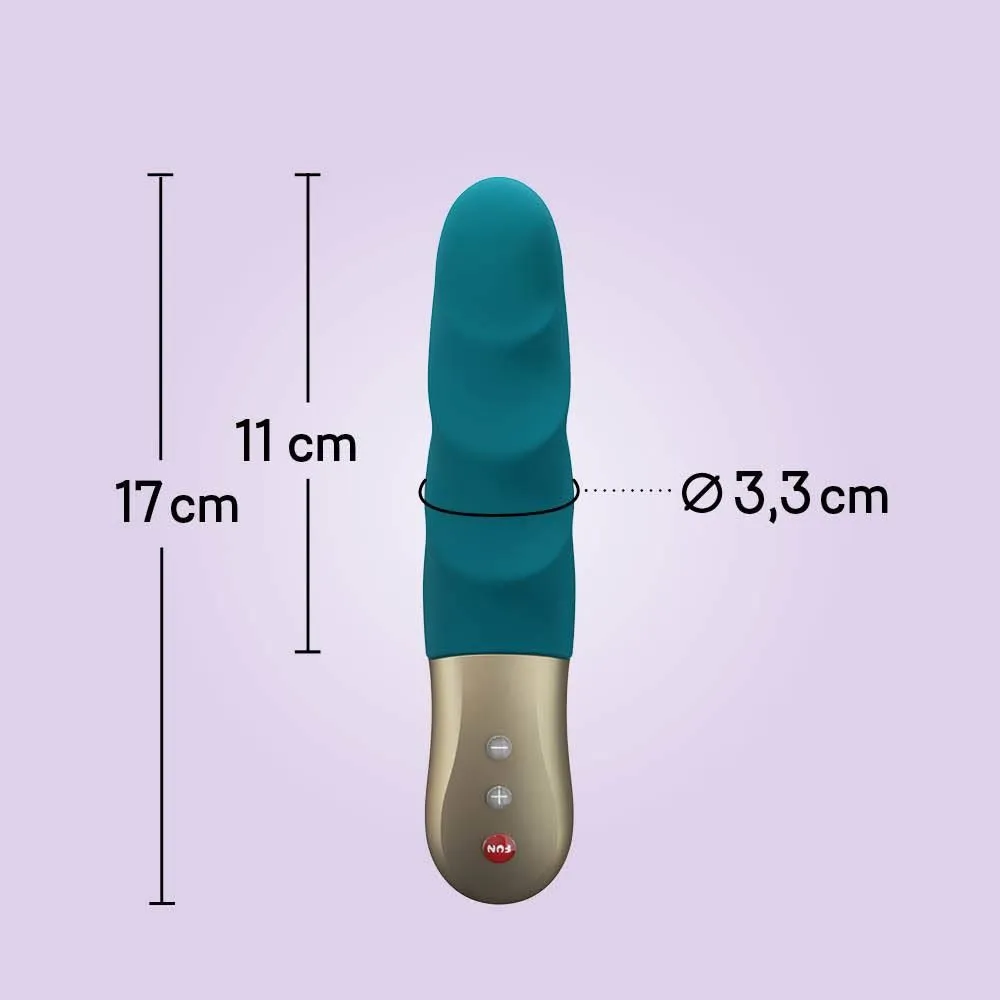 Conçu spécifiquement pour le clitoris interne, le relief ondulé de Stronic Petite masse les couches profondes du vagin et stimule les innombrables terminaisons nerveuses des racines du clitoris.