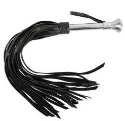 Ce martinet BDSM force le respect. Sa taille imposante (73cm) pour un poids de 484 grammes, son manche en acier, froid au premier abord, et ses longues lanières en cuir de vachette ont de quoi impressionner.