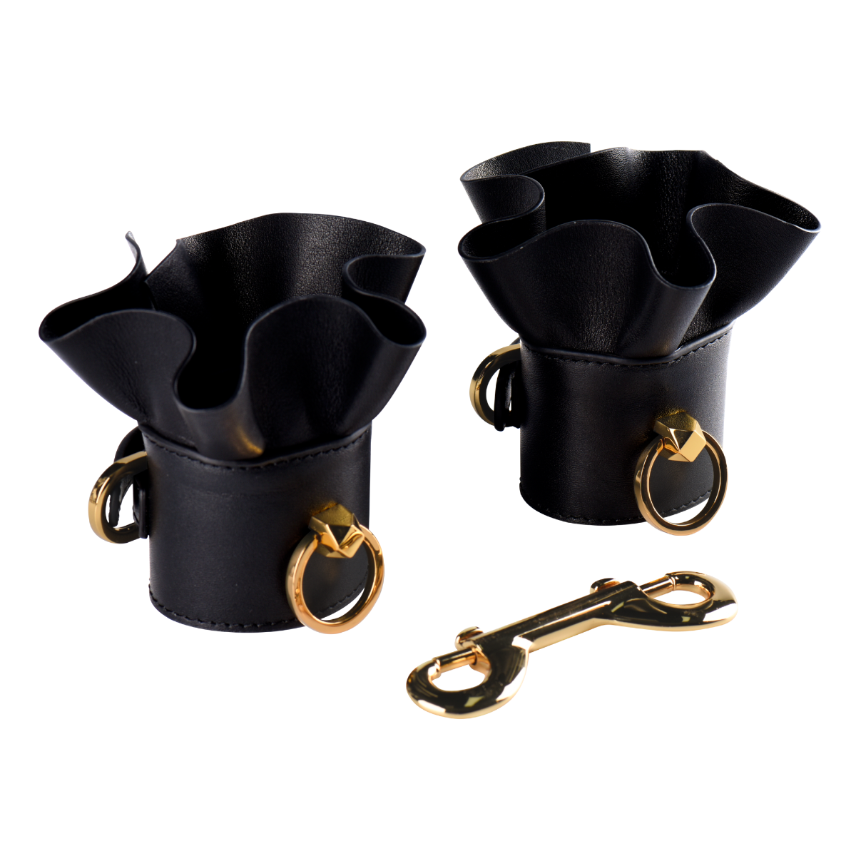 Les bracelets en cuir italien sont surmontés d’un volant en cuir qui apporte une touche féminine et sensuelle.‎