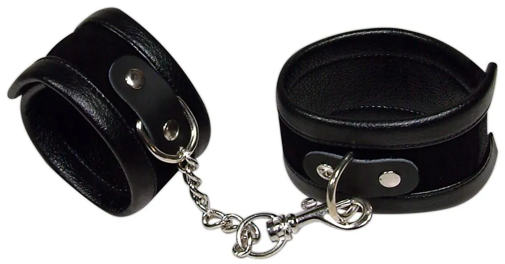 Les menottes contraignent les poignets, celles-ci sont reliées par une chaîne assez longue pour vous permettre de varier les combinaisons.