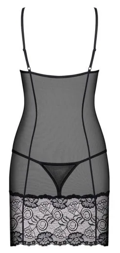 Sa coupe courte et près du corps sublime la silhouette. Une dentelle fine met en avant le décolleté et habille les fesses. Les bonnets sont armaturés pour apporter du maintien à la poitrine. Son tulle transparent dévoile la peau tandis que ses coutures opaques marquent la taille et longent les lignes. Ses bretelles fines et réglables permettent de l’ajuster au mieux à votre morphologie.
