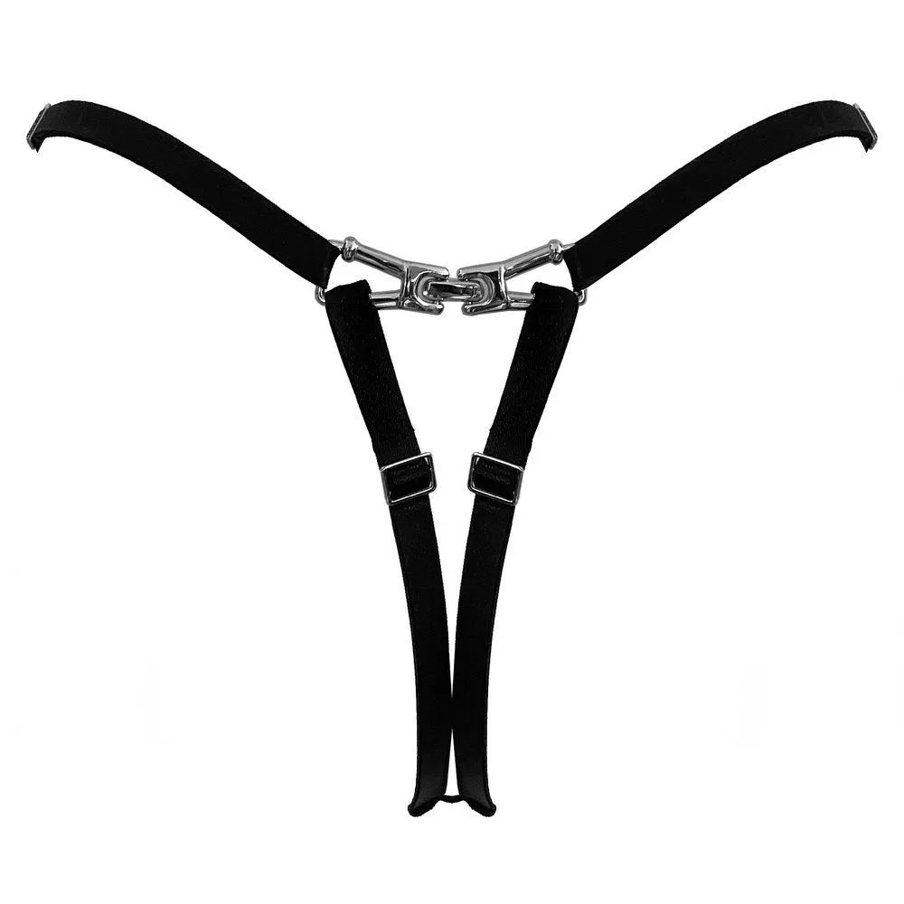 Ce string vient à la fois habiller le pubis d’un tulle fin et souligner les fesses avec ses lanières élastiques. Sa coupe triangle sur l’avant souligne les hanches tandis que son dos est laissé nu sous un jeu de lanières satinées. Chacune est réglable grâce à une attache argentée pour s’adapter au mieux à chaque corps. Un bijou en argent se loge au bas du dos et permet de le dégrafer. A la fois très sensuel et confortable, il souligne les courbes du corps avec élégance.