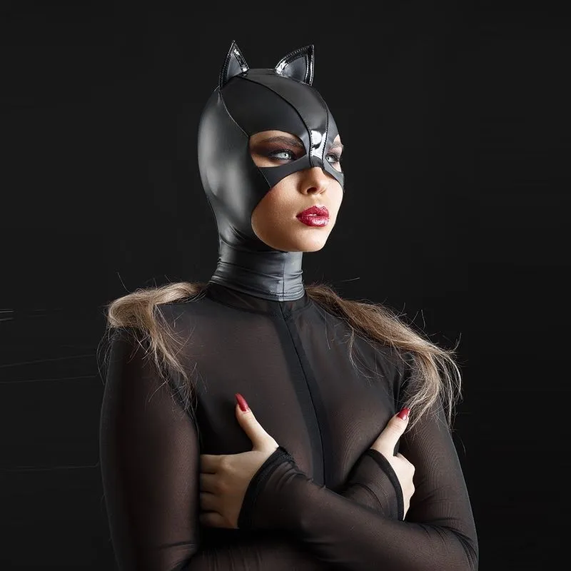 La tête en wetlook, matière très confortable et extensible, est complétée par une bande frontale et des bordures d’oreilles en vinyle.