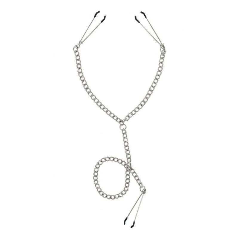 Ce modèle comporte trois pinces : deux pour les tétons, et une troisième qui peut être placée au choix, sur les lèvres, le clitoris, les testicules…