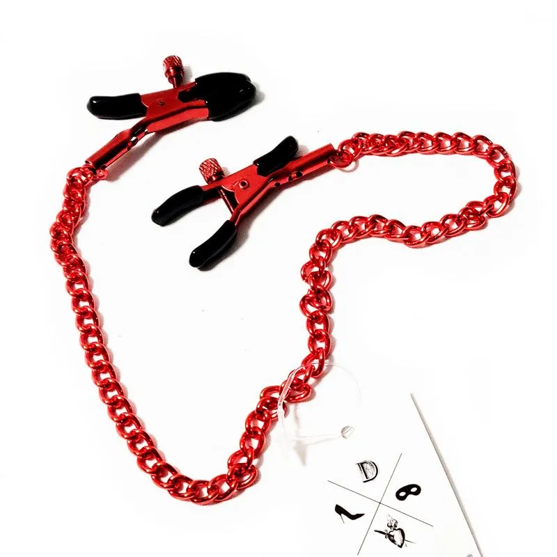 Réglables grâce à une petite vis qui intensifie plus ou moins la pression sur le téton, ces pinces rouges sont idéales pour commencer dans la grande aventure… des pinces à seins !!
