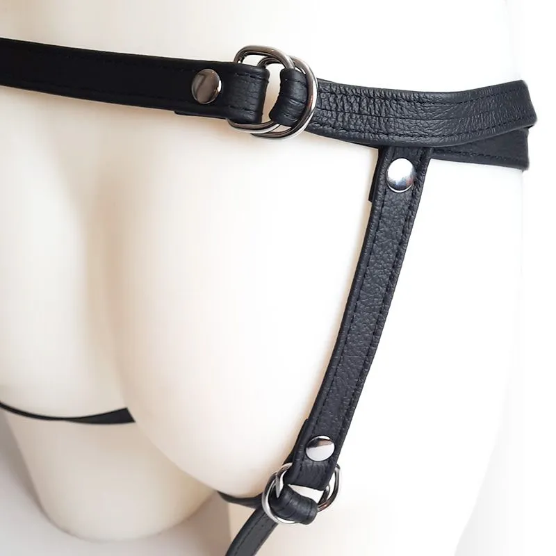 Ce modèle est en cuir souple, une matière douce pour la peau tout en étant incroyablement résistante. Une lanière passe autour de la taille et deux autres sur les fesses. Chacune ajustable d’un simple geste grâce à leur anneau, elles s’adaptent à toutes les morphologies. Contrairement aux boucles de ceinture, elles permettent d’être ajustées au millimètre près de façon très simple. Une fois réglées à votre taille, plus besoin d’y toucher, elles maintiennent le harnais, et donc le dildo, en place.